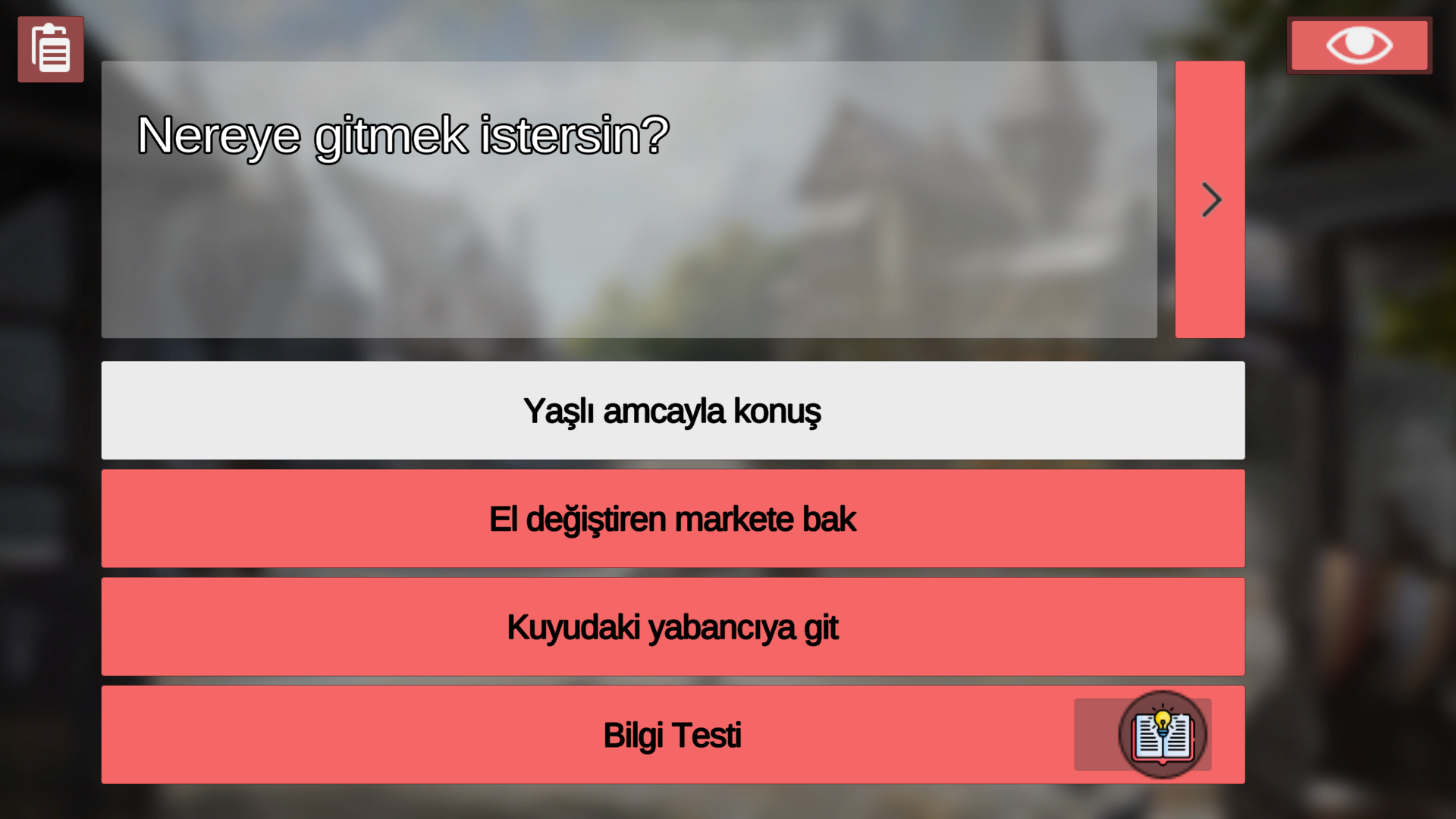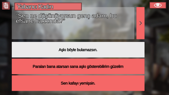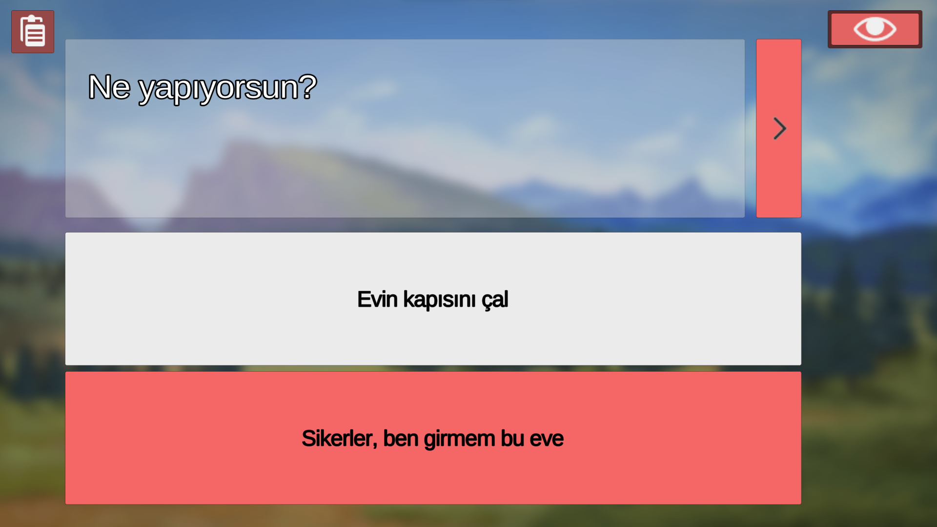 This is a small project where I tried to code a choice-based system. The story progresses by remembering your choices, branching out, and allowing you to move freely within it. Characters can remember what you say, change their opinions about you, and this can lead you down alternative paths. The game automatically saves your progress, and you can reset it using the trash button in the menu.